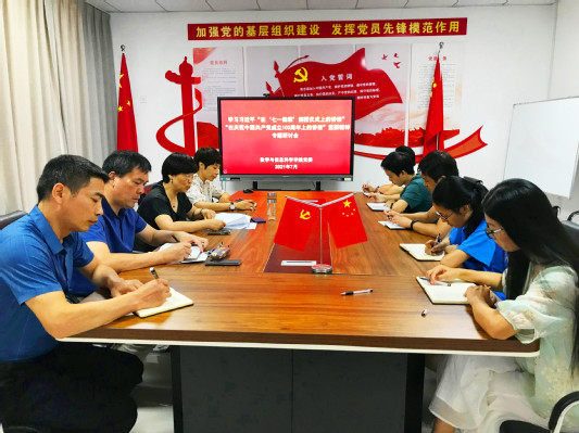 7月8日上午,数学与信息科学学院党委在东一楼205召开党委理论学习中心组(扩大)专题学习研讨会,学院党委理论学习中心组成员、支部书记、科室负责人、党员代表参加会议。会议由学院党委书记郭晓丽主持。