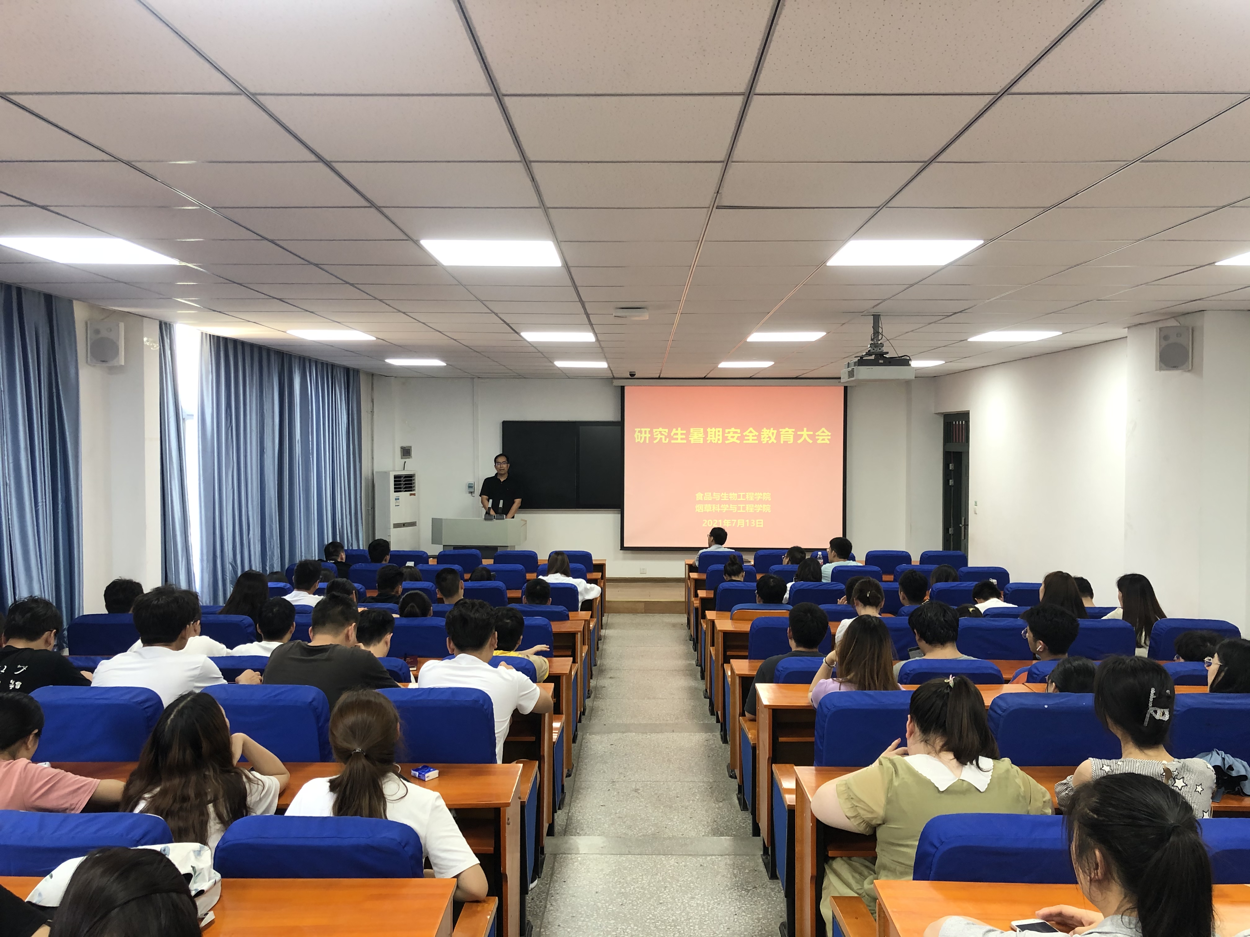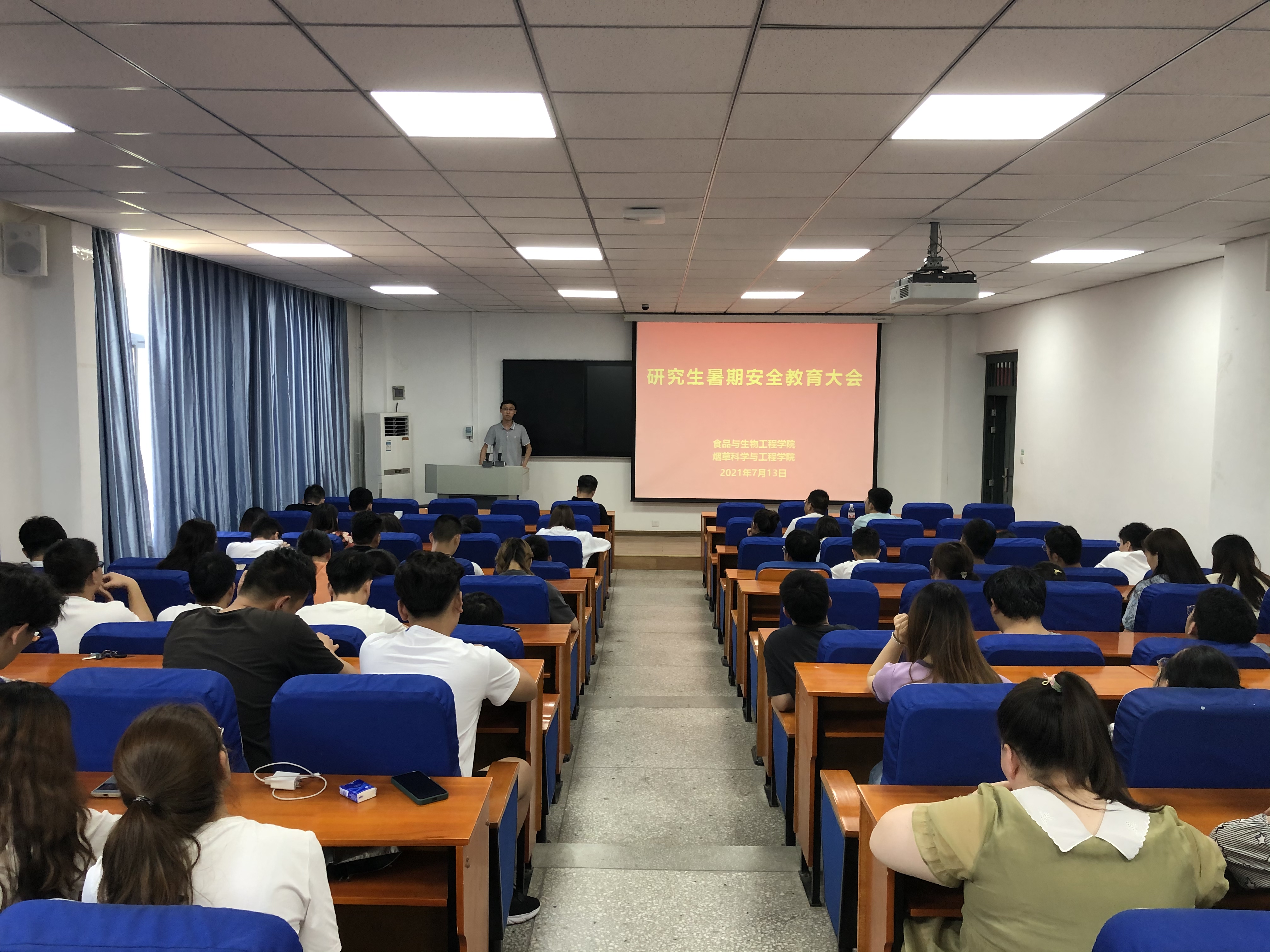 为认真落实学校关于做好2021年暑假学生假期安全管理工作的相关要求,进一步加强学院安全管理工作,增强留校研究生安全意识,食品与生物工程学院(烟草科学与工程学院)于7月13日下午,在食工楼209召开研究生暑期安全教育会议,学院副院长魏涛、研究生辅导员李皓及全体留校研究生参加了会议。