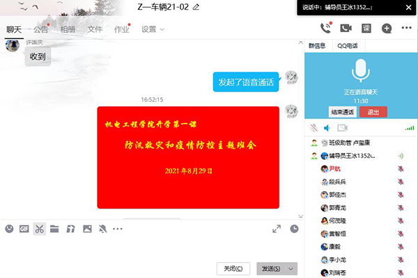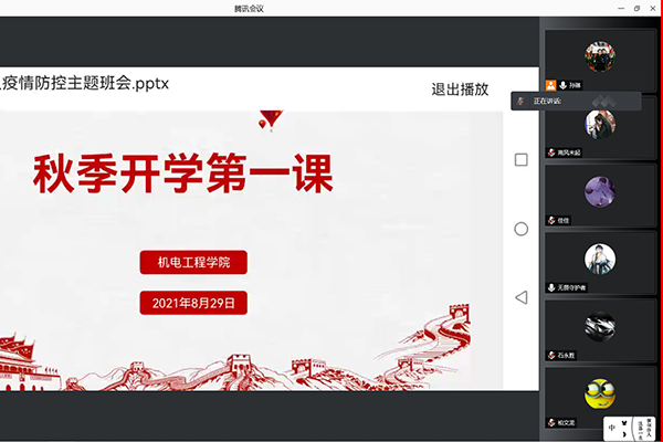 为加强新学期学生工作的顺利开展,确保学生正常学习和生活,机电工程学院积极组织上好2021年秋季开学思政第一课,8月29日,辅导员通过线上组织召开秋季开学及疫情防控主题班会。