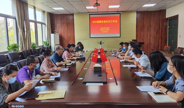 班主任管理办法(暂行)》,并结合学院工作实际,从学生思想引领、班风学风建设、学业规划、考研帮扶、就业指导等班主任重点工作进行了讲解。副院长杨靖指出,2021级新生网上入学报到后,各位班主任要及时开展线上新生入学教育,培养学生专业认同感,通过多种方式,让学生了解专业、热爱专业;要准确了解学生学习情况,加强学风建设,督促学生养成良好的学习习惯,帮助学生处理好在学习和生活中遇到的困难。