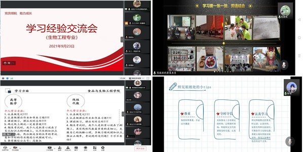 为发挥优秀学子榜样引领作用,助力2021级研究生和本科生尽快适应新阶段学习方式,掌握新阶段学习特点和方法,养成良好的学习习惯,近日,食品与生物工程学院分专业开展“党员领航 助力成长”线上学习经验交流会。学院优秀党员代表和学生代表以及2021级研究生、本科生参加本次交流会。