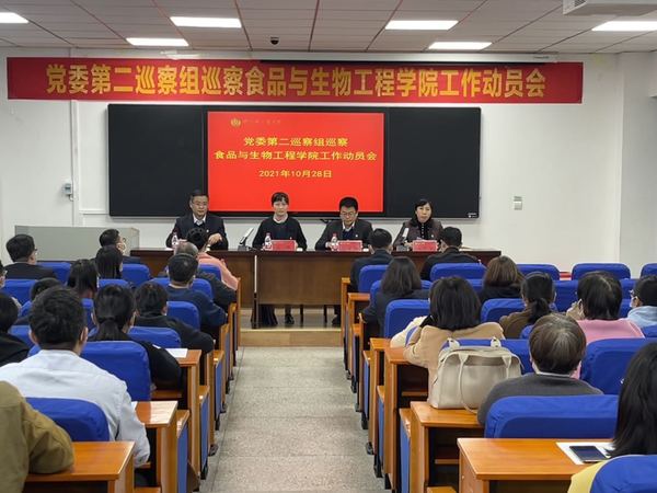 根据学校党委统一安排部署,10月28日下午,校党委第二巡察工作组巡察食品与生物工程学院工作动员会在食工楼209召开。会前,校党委第二巡察工作组组长蒋玮主持召开与食品与生物工程学院党委书记张阳、院长白艳红等班子成员见面沟通会,通报了巡察工作有关安排。会上,蒋玮作了动员讲话,张阳作表态发言,白艳红主持会议。第二巡察工作组成员、食品与生物工程学院全体教职工和部分学生代表参加了会议。