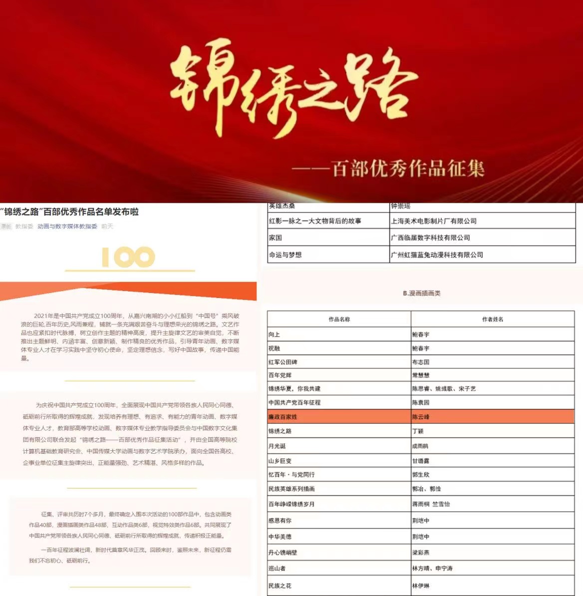 为庆祝中国共产党成立100周年,引导青年动画、数字媒体专业人才在学习实践中坚守初心使命,坚定理想信念,写好中国故事,传递中国能量,教育部高等学校动画、数字媒体专业教学指导委员会和中国数字文化集团有限公司联合举办“锦绣之路——百部优秀作品征集活动”。