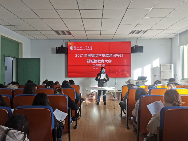 为保障我院2021年国家助学贷款工作顺利有序地开展,完善助学贷款各项工作流程,强化学生诚信教育。艺术设计学院于11月8日下午在东四楼301召开2021年国家助学贷款合同签订暨诚信教育大会,学院党委副书记贾红雨和负责资助工作的霍庆媛老师、张力方老师以及申请高校助学贷款的学生参加了会议。