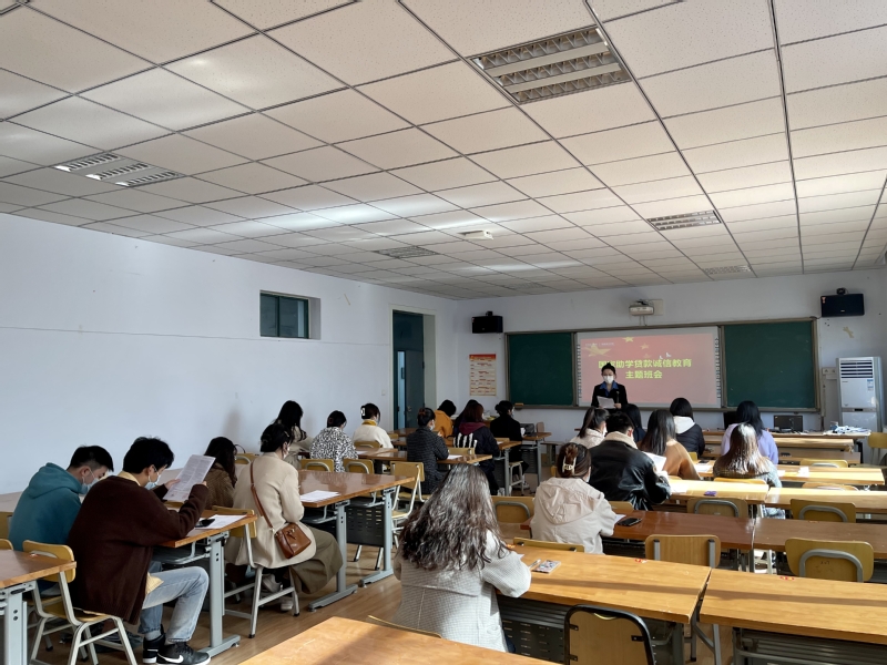 会上,张广佳老师首先对国家助学贷款相关流程以及还款流程做了详细解读,使同学更清晰助学贷款的相关内容,然后针对合同签订的注意事项、影响征信的不良后果进行了宣传及教育。最后张老师总结到:本次主题班会重点在于突出诚信主题、目的在于深化教育内涵,倡导契约精神,增强法律意识,教育和提醒学生及时履行助学贷款合同,保持良好的个人信用记录。培养学生树立诚信意识,明确诚信是立身之本,努力营造诚信还款,感恩社会的良好氛围。