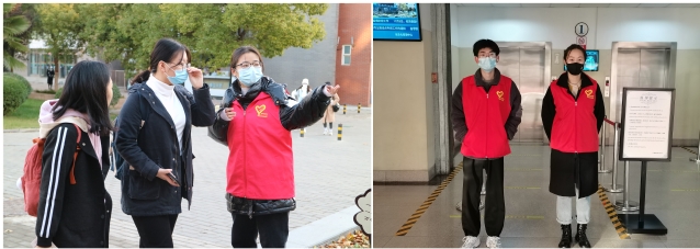 11月8日清晨,志愿者们不畏寒冷,一大早就积极投身疫情防控校园值守工作。他们在做好自我防护的同时各司其职,分布在宿舍区、教学楼、核酸检测区等疫情防控工作执勤点,引导和提醒师生佩戴好口罩、保持安全距离,宣传疫情防控知识,提高广大师生的疫情防控意识,并为核酸检测工作的顺利进行做好服务。一个个忙碌的红马甲成为校园里一道道美丽的风景线。不管是教学楼,还是寝室门口,亦或是校内主要道路上,都有志愿者们忙碌的身影。寒冷的大风天气、长时间的值班都没有阻挡志愿者工作的热情,他们用实际行动为全体师生的健康保驾护航。如果说奉献有颜色,那便是无处不在的“志愿红”,在寒冷冬日里,传递着温暖与希望,传递着防疫必胜的决心。