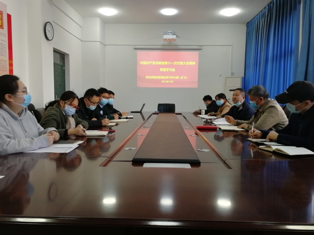按照学校《关于深入学习宣传中国共产党河南省第十一次代表大会精神的通知》,11月11日上午,政法学院党委在212会议室组织召开理论学习中心组中国共产党河南省第十一次党代会精神专题学习会。学院党委理论学习中心组全体成员及各支部书记参加,学习会由学院党委书记宋德涛主持。