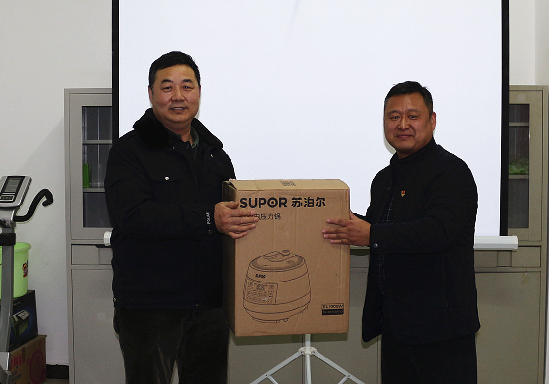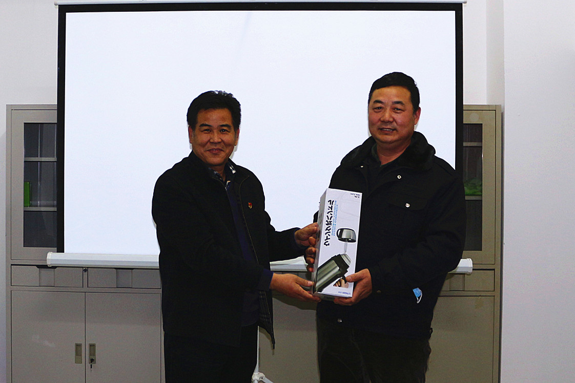 最后,保卫处处长吴刚、党总支书记黄晓鹏,分别为许老师赠送荣休纪念品,并与大家一道,与许老师合影留念。