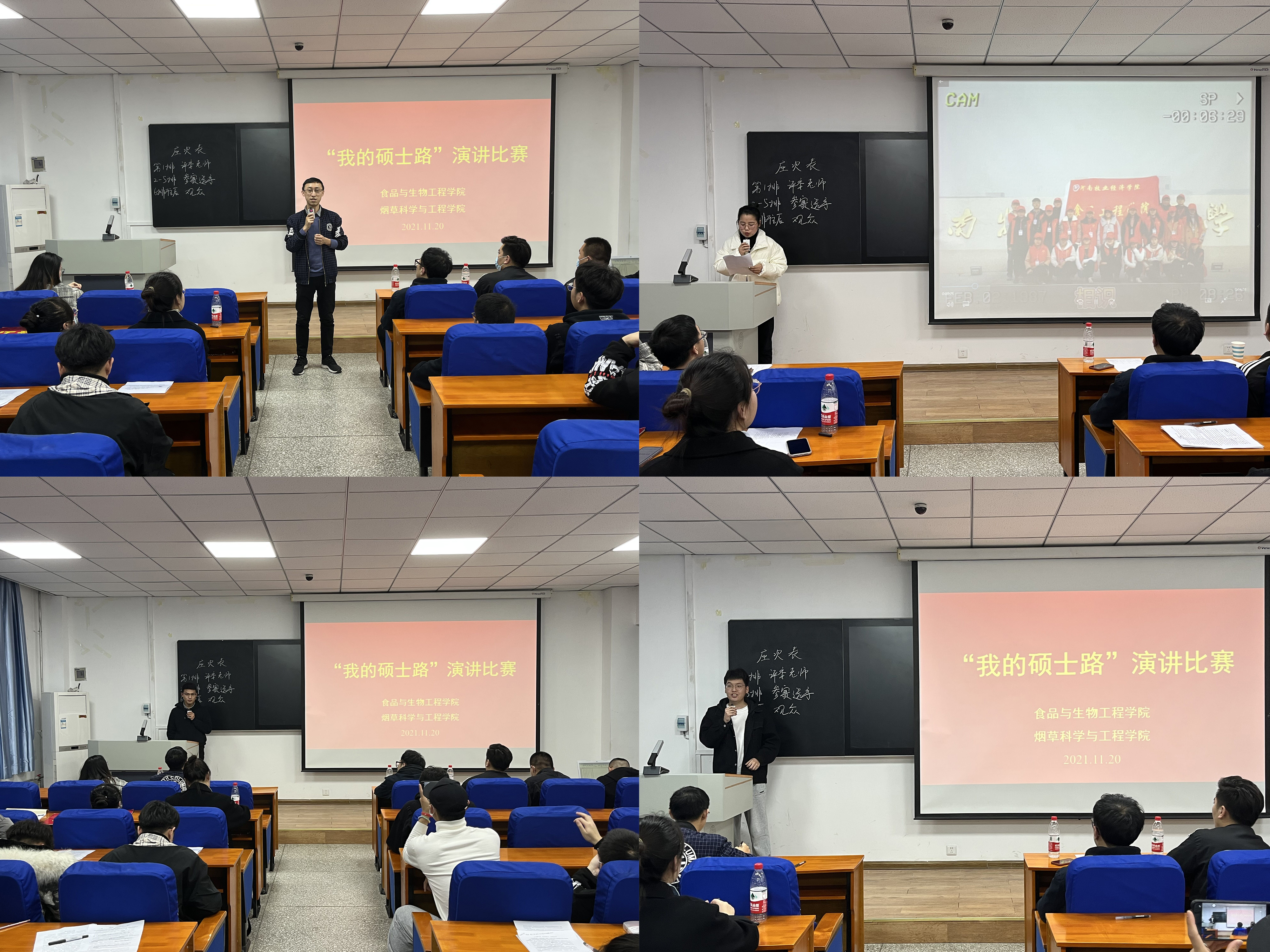 为促进研究生自觉规划硕士阶段学习目标,营造浓厚的学习氛围,11月20日下午3点,食品与生物工程学院在食工楼209教室举办第八届“我的硕士路”主题演讲比赛。学院辅导员李皓、何春雨老师、2020级研究生代表及2021级全体研究生参加了此次活动。