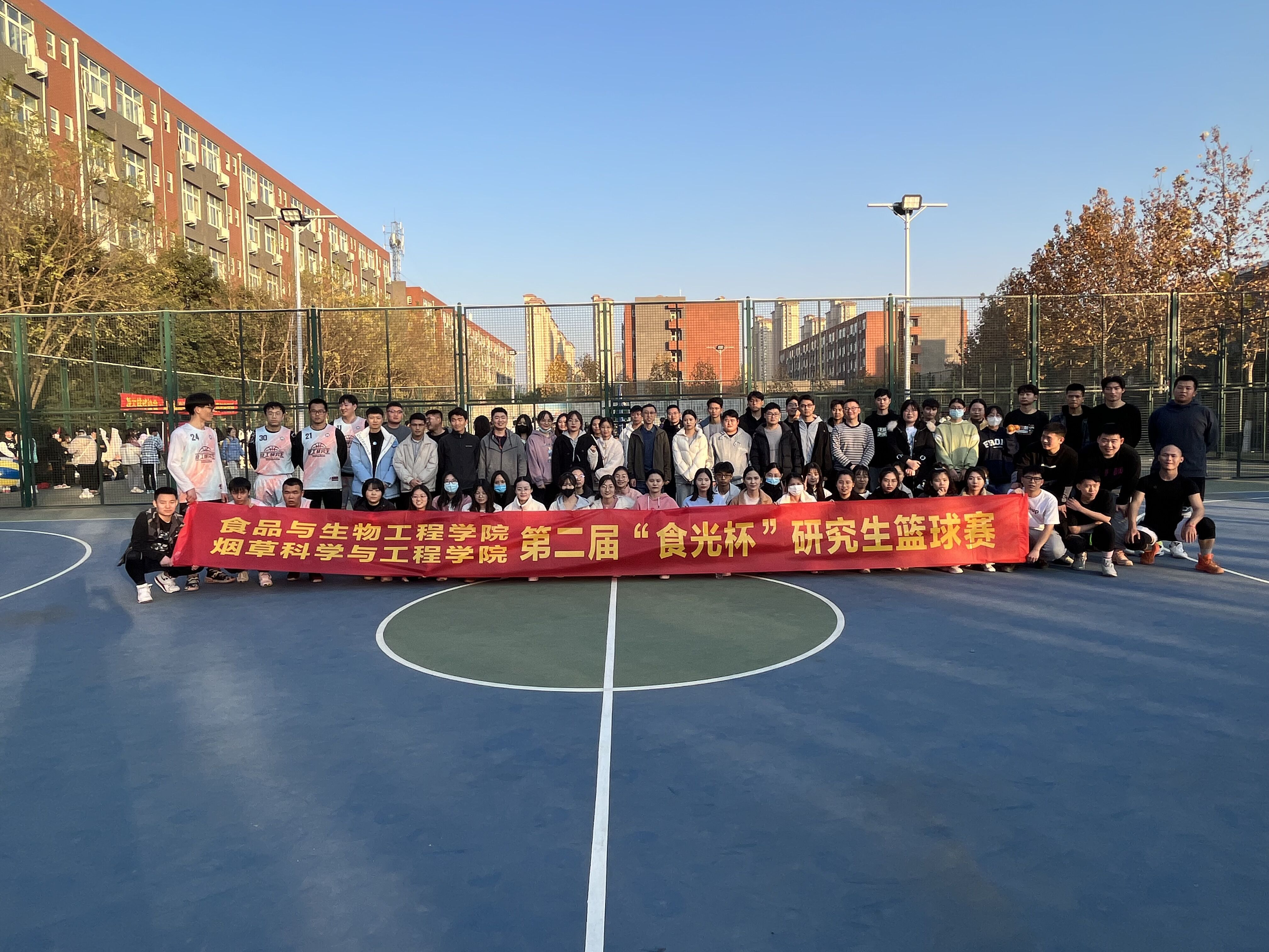 为丰富研究生校园生活,提高班级凝聚力,食品与生物工程学院于12月5日下午在科学校区篮球场举办了第二届“食光杯”研究生篮球赛,学院负责研究生工作的李皓老师、2021级全体研究生及2019、2020级研究生代表参加了本次比赛。