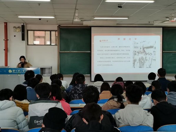 王路杰同学首先从历史背景、发展过程、事件成果对“一二·九”运动进行概述,重点讲述了一二九运动在新时代的重要意义,呼吁同学们以历史为教科书,弘扬以爱国主义为核心的民族精神和以改革创新为核心的时代精神,敢于担当,善于作为,锐意进取,振兴中华。随后,田静源同学着重介绍了“一二·九”运动中,为争取民族独立与祖国主权完整而奋起反抗的青年,号召当代学生继承和发扬革命先辈无私无畏的牺牲奉献精神,勇立时代潮头,彰显青春本色,争做时代先锋。宣讲结束后,学生们纷纷表示,要永远铭记历史,勿忘国耻,心系国魂,不忘初心,勇担使命。