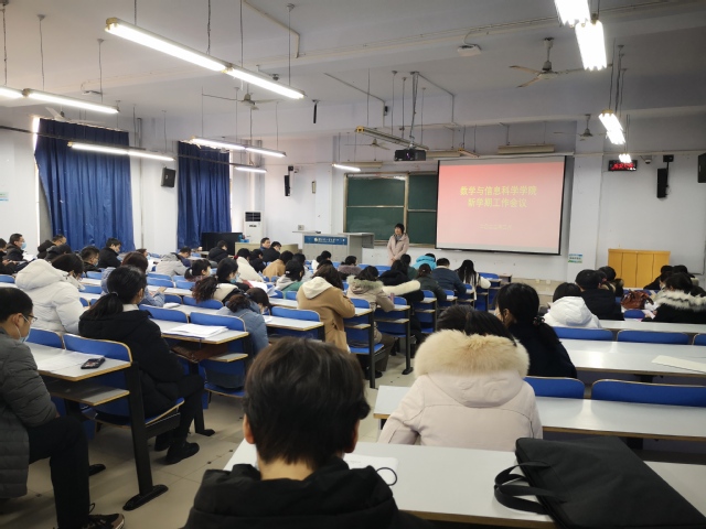 2月19日下午,数学与信息科学学院在东一楼218召开新学期工作会议,传达学校2022年工作会议精神,安排部署新学期工作规划,学院领导班子及全体教职工参加了会议。