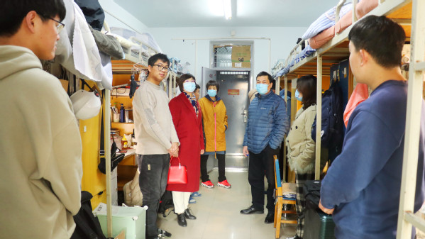为关心了解同学们返校后的学习、生活情况,帮助他们尽快调整状态投入到新学期的学习生活中,2月20日,学院院长黄守佳、党委书记郭晓丽、副书记王燕翔以及辅导员一行,深入学生宿舍关心慰问返校学生。