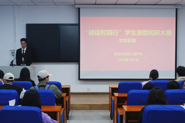 为贯彻落实立德树人的根本任务,加强高校学生资助知识的普及与教育,增强大学生诚信意识, 3月3日下午,食品与生物工程学院在食工楼209举办了“诚信校园行”学生资助知识大赛线下初赛,学院资助专项老师、资助助理及全院各年级学生参与活动。