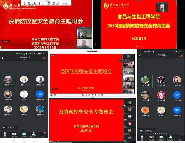 为扎实做好学生疫情防控工作,提高同学们防范意识,近日,食品与生物工程学院分年级分专业分班级召开疫情防控暨安全教育线上主题班会。会议由各班辅导员主持,覆盖全体学生。