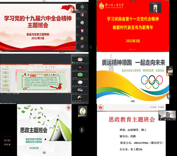 班会上,各辅导员老师围绕学习党的十九届六中全会精神、北京2022年冬奥会、冬残奥会、中国女足亚洲杯夺冠等体育盛会,河南省第十一次党代会精神等主题,从不同视角为同学们带来一堂堂精彩的班会。通过对党的十九届六中全会精神的深入解读,辅导员老师带领学生深入学习党的百年奋斗历程以及党带领人民取得的伟大成就,教育引导学生弘扬伟大建党精神,从百年党史中汲取奋进力量,在新时代新征程上为争取更大荣光贡献力量;结合冬奥故事及女足夺冠的艰辛历程,辅导员老师以首战东奥的“00后”小将谷爱凌和苏翊鸣、奥运老将武大靖、贾宗洋等为具体事例,让学生深刻感悟冬奥精神的奋进力量,体会中国女足永不服输的精神,进一步提升同学们的文化自信和民族自豪感,激励青年学子大力弘扬中国体育精神,在学习、工作、生活中做到敢于拼搏、勇于挑战、永不放弃,超越自我;围绕河南省第十一次党代会精神学习,辅导员老师引导同学们深刻认识锚定“两个确保”、全面实施“十大战略”的重要意义和丰富内涵,全面了解近年来河南建设发展成果以及未来现代化河南建设的宏伟蓝图,引导学生坚决扛起“奋勇争先,更加出彩”的青春使命,不断提升个人知识水平和综合素质,奋力谱写新时代中原更加出彩的绚丽篇章。