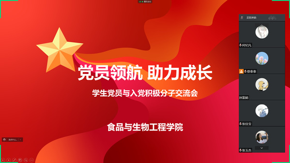 为端正入党积极分子入党动机,引导学生坚定理想信念,牢记初心使命,奋发作为,3月25日,食品与生物工程学院开展“党员领航 助力成长”之学生党员与入党积极分子交流会。辅导员何春雨老师、蔡晨阳老师,2018级优秀学生党员及2021级入党积极分子参加交流会。