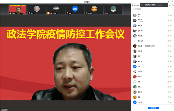 为贯彻落实上级有关疫情防控工作要求,3月31日,政法学院召开线上疫情防控工作会。全体教职工参会,会议由学院党委书记宋德涛主持。