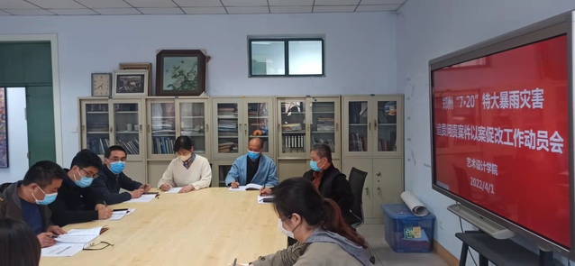 4月1日下午,艺术设计学院在东四楼305会议室召开郑州“7·20”特大暴雨灾害追责问责案件以案促改工作动员会,学院领导班子成员、管理岗科级干部、实训中心负责人参加会议,会议由党委书记邵元珠主持。