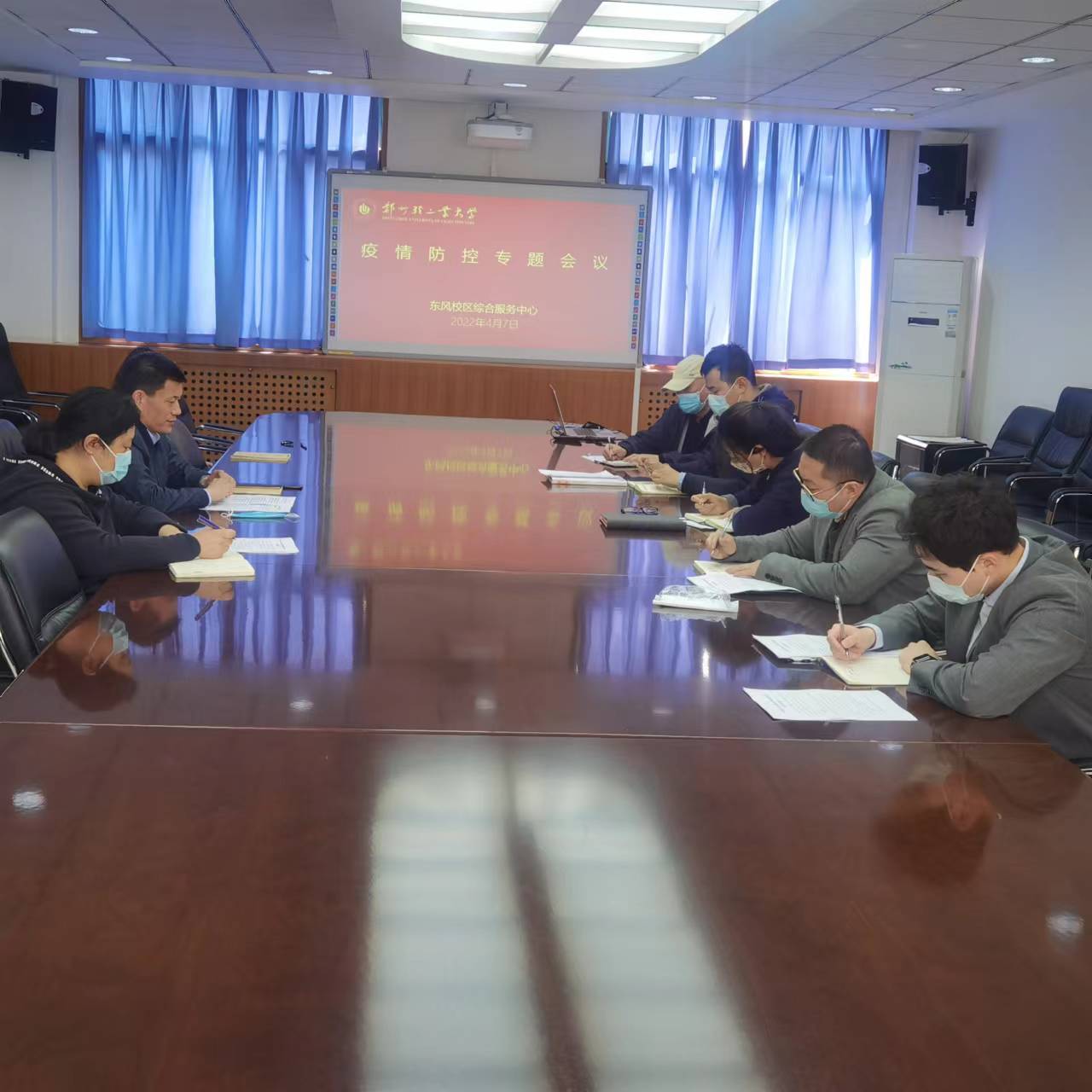 4月7日,东风校区综合服务中心在东风校区办公楼二楼大会议室召开疫情防控第4次专题会议,专项研究部署近期疫情防控工作,部门全体人员参加。