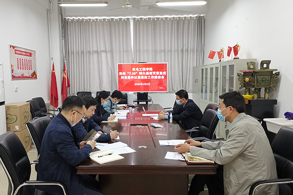 4月8日下午,机电工程学院在西三楼201会议室召开郑州“7·20”特大暴雨灾害追责问责案件以案促改工作推进会,学院领导班子成员、党政办主任等参加会议。会议由院党委书记刘国豪主持。