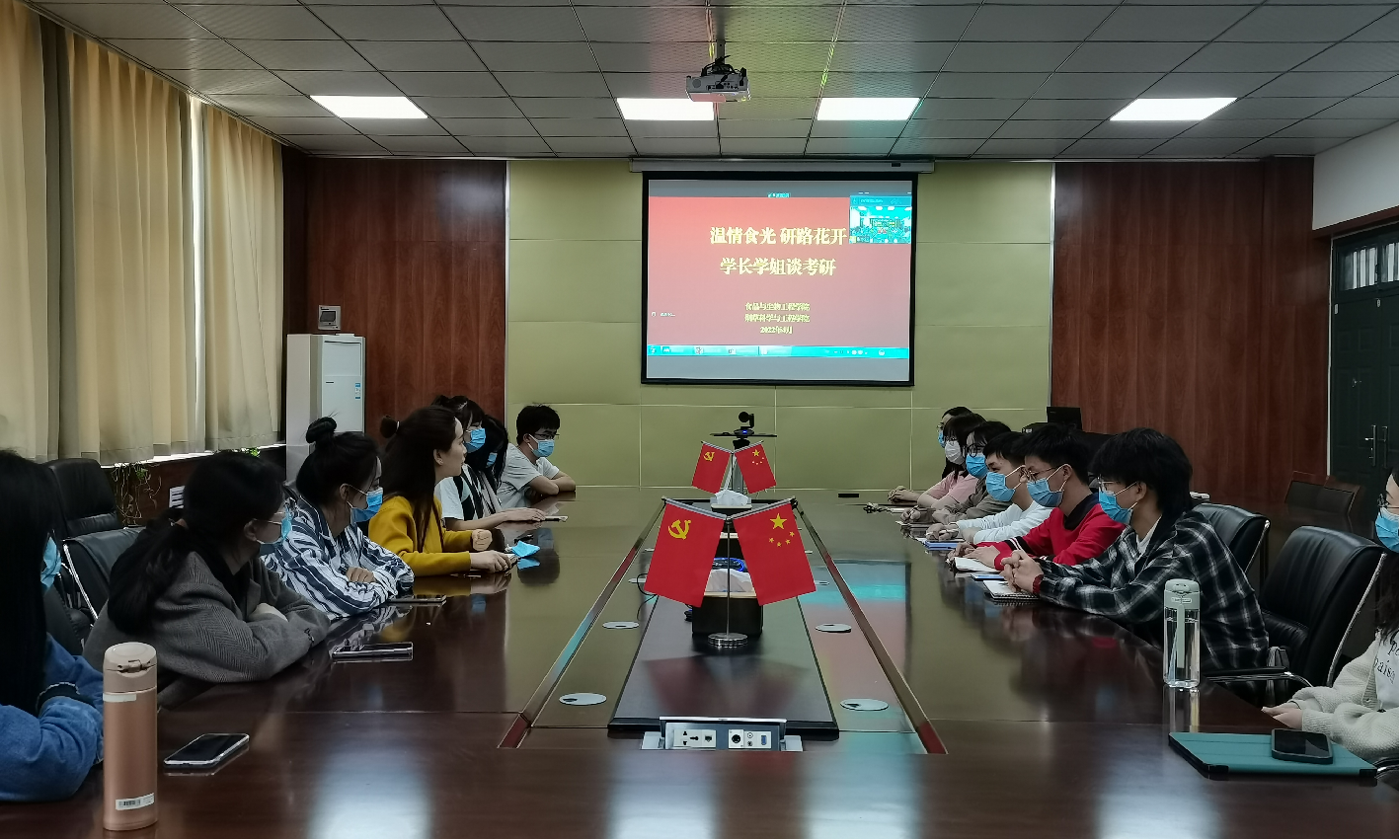 4月19日,食品与生物工程学院采取线上线下相结合的方式在食工楼211开展“温情食光 研路花开—学长学姐谈考研”活动。学院就业专职老师雷瑞泽,2022届优秀考研学生代表以及低年级学生参加了本次活动。