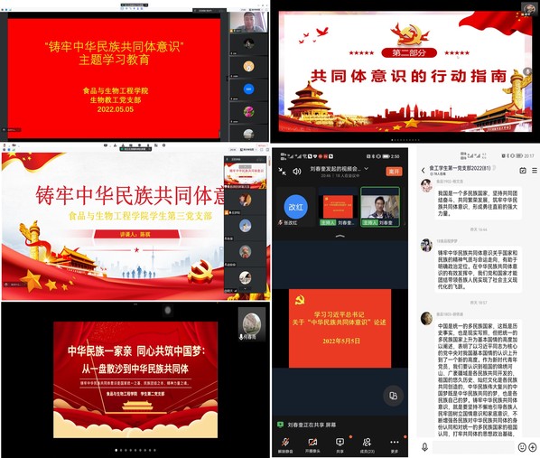 为进一步铸牢中华民族共同体意识,提升师生思想政治水平,近期,食品与生物工程学院组织各党支部开展“铸牢中华民族共同体意识”主题教育活动。