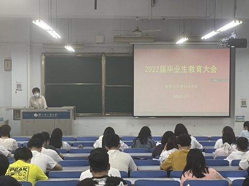 5月20日下午,数学与信息科学学院在东一楼218教室以线上线下相结合的方式召开了2022届毕业生教育大会。学院党委副书记王燕翔、就业专职教师、教务员及2022届部分毕业生参加了会议。