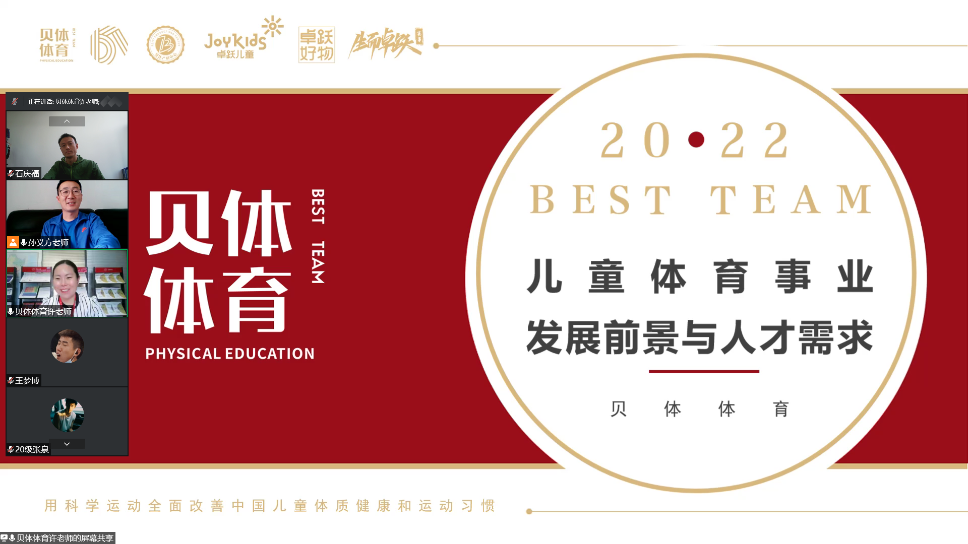为了帮助同学们进一步了解体育行业发展现状,熟悉体育人才社会需求,5月18日-19日,体育学院利用腾讯会议在线上举办了就业创业大讲堂系列活动。此次活动,特邀我校体育学院校友、河南焱火体育产业有限公司创始人单长春和贝体(北京)体育产业有限责任公司人力资源副总许秀玲主讲,体育学院2021级和2020级学生参加了此次活动。