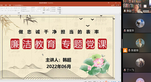 为增强研究生反腐倡廉教育,切实筑牢拒腐防变思想道德防线,6月1日上午,政法学院院长韩超为2021级研究生讲授廉洁教育专题党课,学院党委副书记刘放美、研究生辅导员匡竞和21级全体研究生参加。