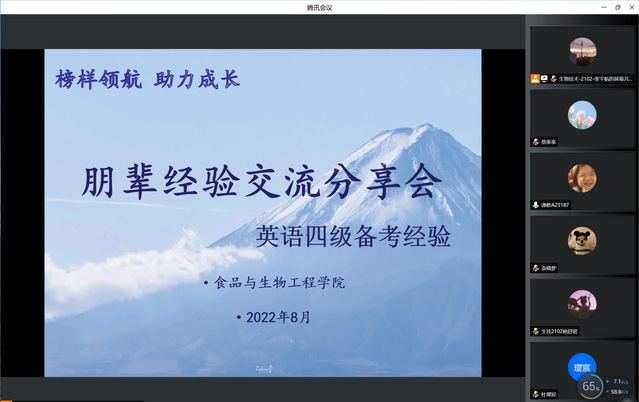 为助力学生备考英语四级,提升学习能力,近日,食品与生物工程学院开展以“英语四级备考经验”为主题的朋辈经验交流分享会,会议邀请学院高分通过四级英语考试的朋辈导师分享备考经验,低年级备考学生参会。