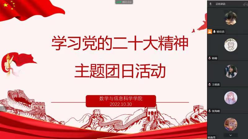 上下同欲者胜,风雨同舟者兴。接下来,数学与信息科学学院党委将切实加强组织领导,把智慧和力量凝聚到党的二十大确定的各项任务上来,认真学习贯彻党的二十大精神,引导全院师生边学边做、边做边学,真正做到学懂弄通做实,为更好履行科教兴国战略,培养德智体美劳全面发展的社会主义建设者和接班人做出更大贡献!