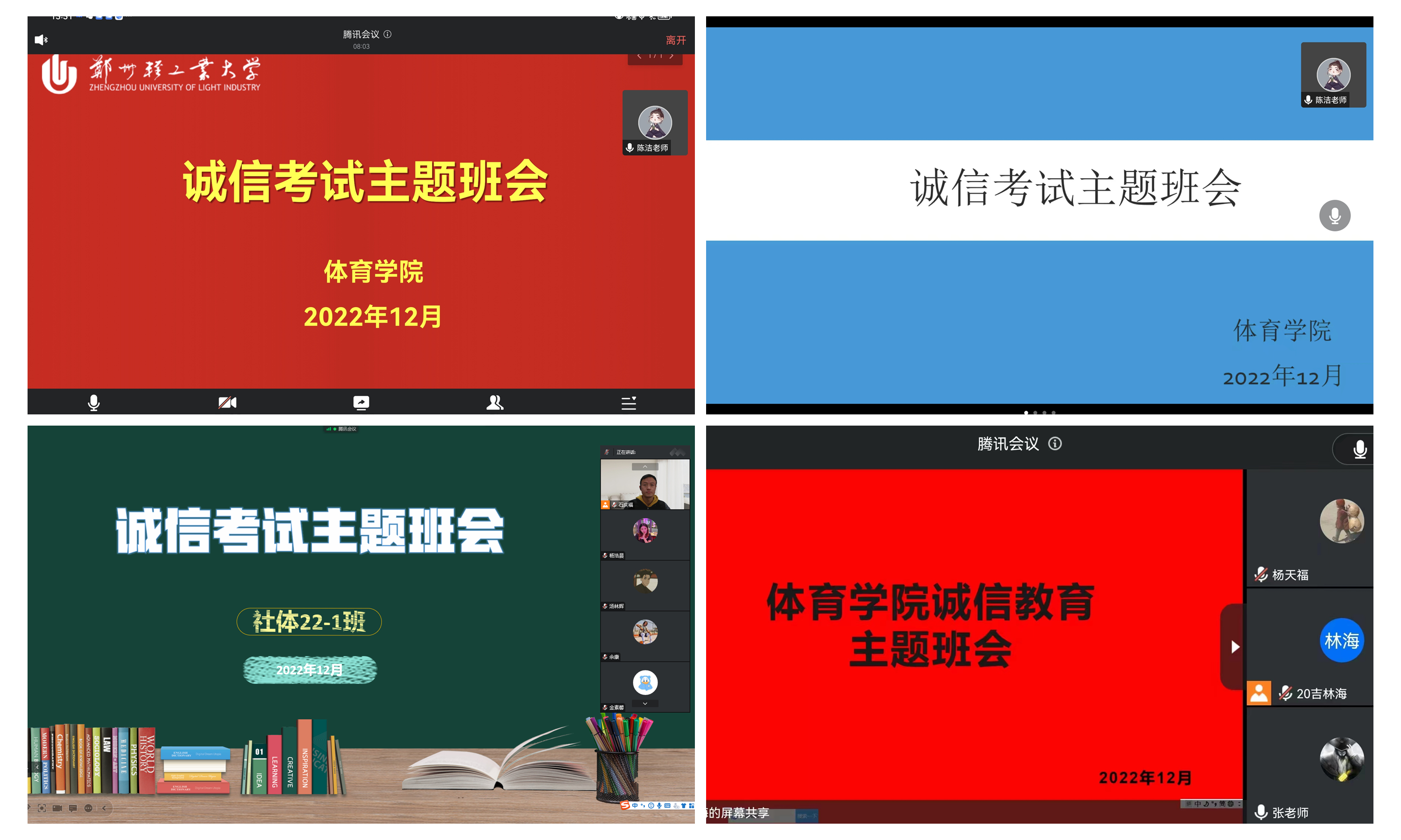 为进一步增强学生诚信考试意识,严肃学风考纪,营造良好的考试环境。12月21日,体育学院组织各班级分别召开诚信考试教育主题班会。