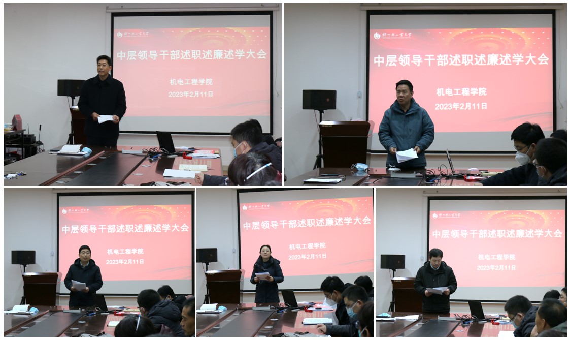 2023年2月11日下午,机电工程学院在东风校区西三楼215召开了2022年度处级领导干部述职述廉述学大会,全体教职工参加了会议。会议由党委书记刘国豪主持。