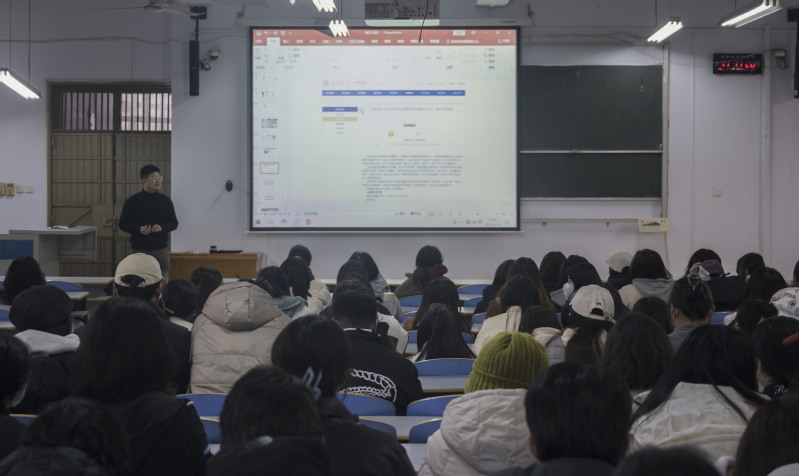 2023年2月14日下午,艺术设计学院在东风校区西五楼514室举办了第四十六期校友讲坛。本期讲坛以“未来的选择:考研与就业”为题,特别邀请优秀校友、河南省“最美大学生”获得者王子健做主讲嘉宾。讲坛由白婷老师主持,200余名本科学生参加了此次活动。