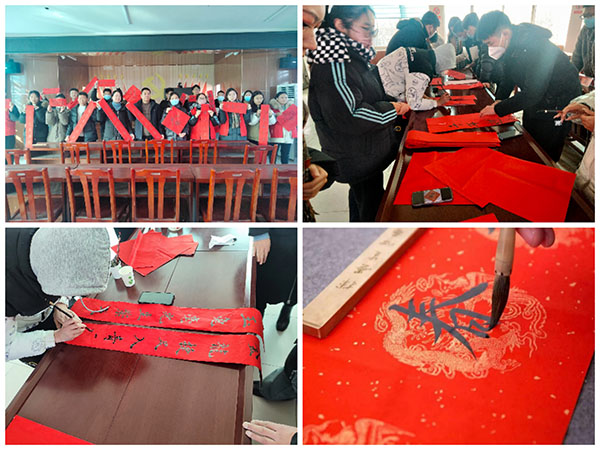 在“承民俗,品年味,文化进万家”主题实践活动,同学们“贴对联、挂灯楼”“包饺子、做年夜饭”“赏花灯、游锣鼓”“逛新春庙会”等,充分感受辞旧迎新、阖家团圆、国泰民安的文化内涵,共享欢乐中国年;在“浓浓福气迎新年”义务写春联活动中,同学们走进社区、居民家中,挥毫泼墨、奋笔疾书,认真地写下一幅幅寓意吉祥的春联和“福”字,为社区群众送上饱含吉祥如意的春联、福字,在浓浓“福”气中共迎兔年新春。