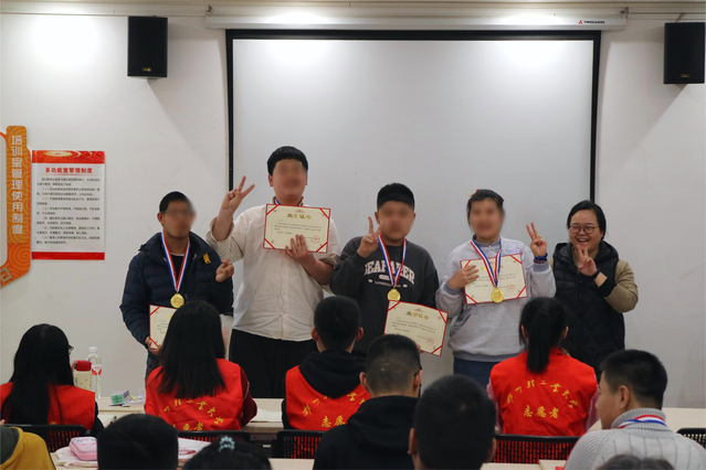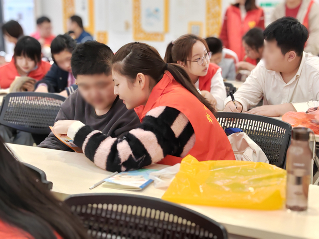 到达服务点后,志愿服务队员们详细了解了大龄心智障碍儿童的基本信息,并选择服务对象与其结成一对一的帮扶对子,便于开展第一项课业辅导活动。在课业辅导环节,志愿者与孩子们耐心沟通、悉心讲解,教孩子们写作文、朗读诗歌、学习电脑,孩子们都学的津津有味。在辅导过程中,志愿者与孩子们开展互动交流,有针对性地进行思想引导、心理疏导等,让孩子们感受到了来自社会大家庭的温暖。在朗读比赛环节,志愿者担任指导老师兼评委,并为参赛选手加油鼓劲,孩子们在激励和赞许中,踊跃参与、充分展现自我,活动顺利开展。活动结束后,志愿者就孩子们的表现向家长一一反馈,家长们对志愿者给与充分肯定与由衷的感谢。