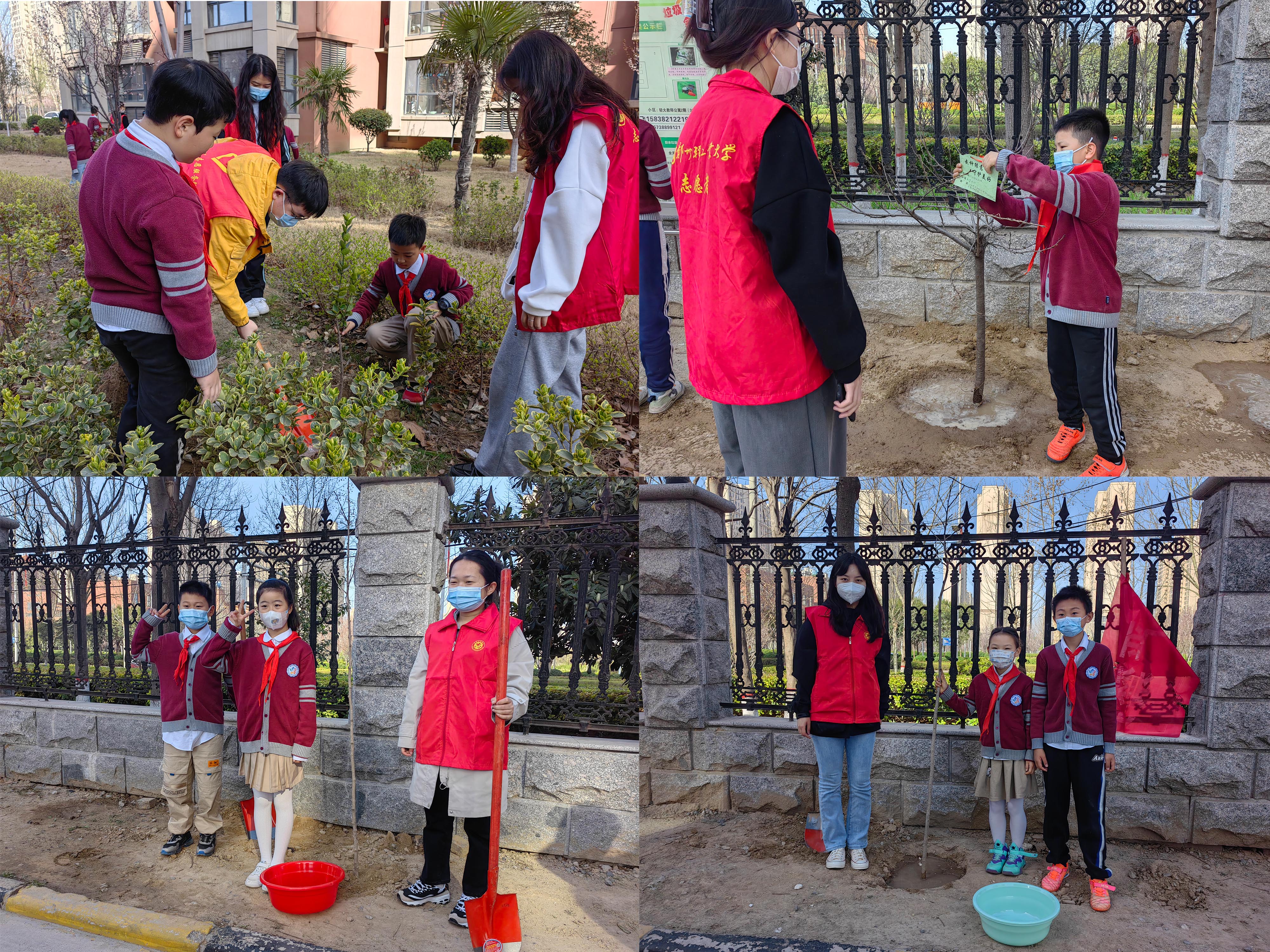 早上九点,研究生志愿者准时在轻大教师公寓二期集合,社区工作人员首先对本次活动植树范围进行讲解,研究生志愿者按照活动内容分组后,迅速带领着小朋友们投入到植树活动中。整个植树现场呈现出热火朝天的景象,我院研究生志愿者带领着小朋友们挥锹铲土、扶树围土,把一颗颗树苗植入泥土中;在活动接近尾声时,各位老师为小朋友们分发了“栽种绿意,守护美好”的树牌,待小朋友们在树牌上写上自己的名字后,我院志愿者帮助小朋友将树牌挂在了共同栽种的树上。本次志愿活动我院志愿者和小朋友们用劳动诠释着对大自然和生命的热爱,并在相互配合中感受春天的美好,践行了雷锋精神。