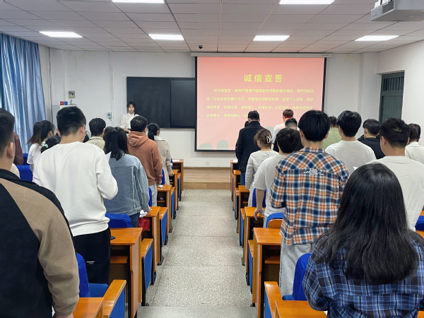 会上,蔡老师首先向同学们发放《致贷款毕业生的一封信》和《国家助学贷款还款流程》,详细介绍了国家助学贷款还款流程,并从贷款毕业生按时还款的重要性、贷款违约必须承担的后果、贷款毕业生信息确认流程等方面进行了详细阐释,重点强调毕业确认和贷款到期等多个重要时间节点,鼓励有条件的贷款毕业生提前还款。随后,结合实际案例向同学们讲述了贷款逾期违约对个人征信的影响和严重后果,同时提醒大家要谨防不法分子利用助学贷款的名义行骗,要求同学们对收到的信息仔细辨别,以防被骗。最后,蔡老师带领全体贷款毕业生进行诚信宣誓,并向贷款毕业生们表达衷心祝福,希望同学们自立自强,诚实守信,怀揣对国家、社会和学校的感恩之情,以优异的成绩回报国家和社会。