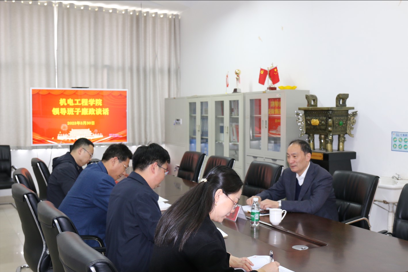 3月30日下午,校长魏世忠莅临东风校区,在西三楼201会议室与机电工程学院领导班子成员进行了集体廉政谈话。机电工程学院领导班子成员认真倾听了魏世忠校长的讲话,党政主要负责人分别表态发言。