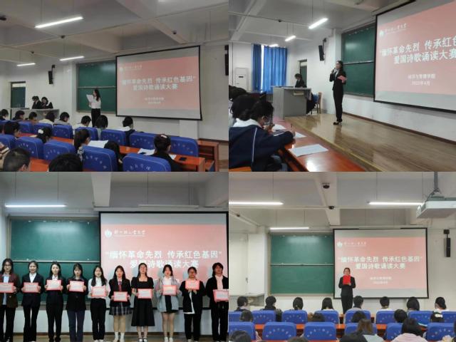 为学习贯彻爱国精神,传承红色基因,培育和践行社会主义核心价值观,彰显经管学子浓厚的爱国情怀,同时应清明之际,悼念革命烈士,缅怀先烈的丰功伟绩,加强学生们的思想道德教育。经济与管理学院组织2021级部分学生于4月6日下午15时在经管楼211教室开展主题为轻青小课堂——“缅怀革命先烈,传承红色基因”的爱国诗歌诵读大赛。