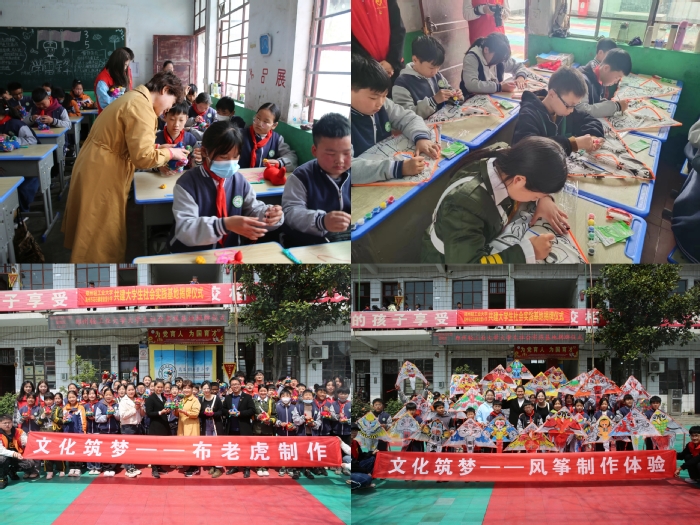 仪式结束后,大学生志愿者们与小学生一起,开展了两场“文化筑梦——优秀传统文化进校园”的新时代文明实践体验活动。在布老虎制作体验专场,河南省非遗传承人赵玲老师现场演示,与35名小学生一起展开布老虎手工制作之旅;在传统风筝体验专场,辅导员白婷老师现场作画,与40名小学生一起进行传统风筝画的绘制创作。活动中,各位学生聚精会神,聆听老师讲解的同时,不断勇于尝试,不一会儿,虎头虎脑的布老虎,色彩亮丽的传统风筝便活灵活现跃然纸上,大家在潜移默化中感受传统文化技艺魅力。