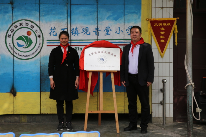 仪式现场,艺术设计学院与观音堂小学共同签订了建立大学生社会实践基地的协议书,双方代表共同为大学生社会实践基地揭牌。