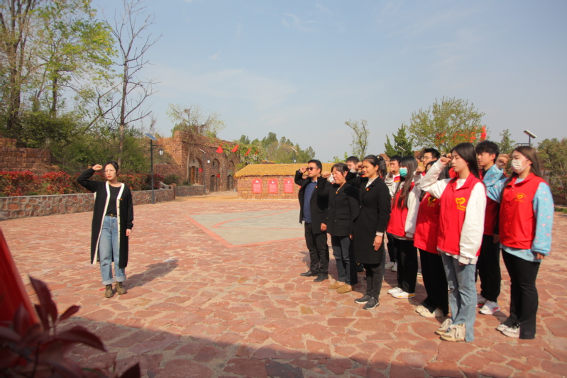 方山寨豫西抗战纪念馆是在方山寨抗日奇袭战遗址的基础上翻新修建而成,收集陈列了各类珍贵的历史文物和文献展品共计617件,党员师生们看着一件件饱经沧桑的展品,抚摸着一门门久经战火的大炮,走上充满历史痕迹的城墙,瞻仰着革命烈士铜像坚毅的面容,纷纷被先烈们的英勇气概所感动,深感今天的幸福生活来之不易,心情久久不能平静。参观结束后,学院师生和观音堂小学两位党员教师紧握右拳,面向党旗庄严宣誓,铿锵有力地重温入党誓词,在庄严的宣誓中,师生们都接受了一次红色教育的洗礼,弥足珍贵的红色教育使我们更加坚定理想信念,为共产主义理想奋斗终身。