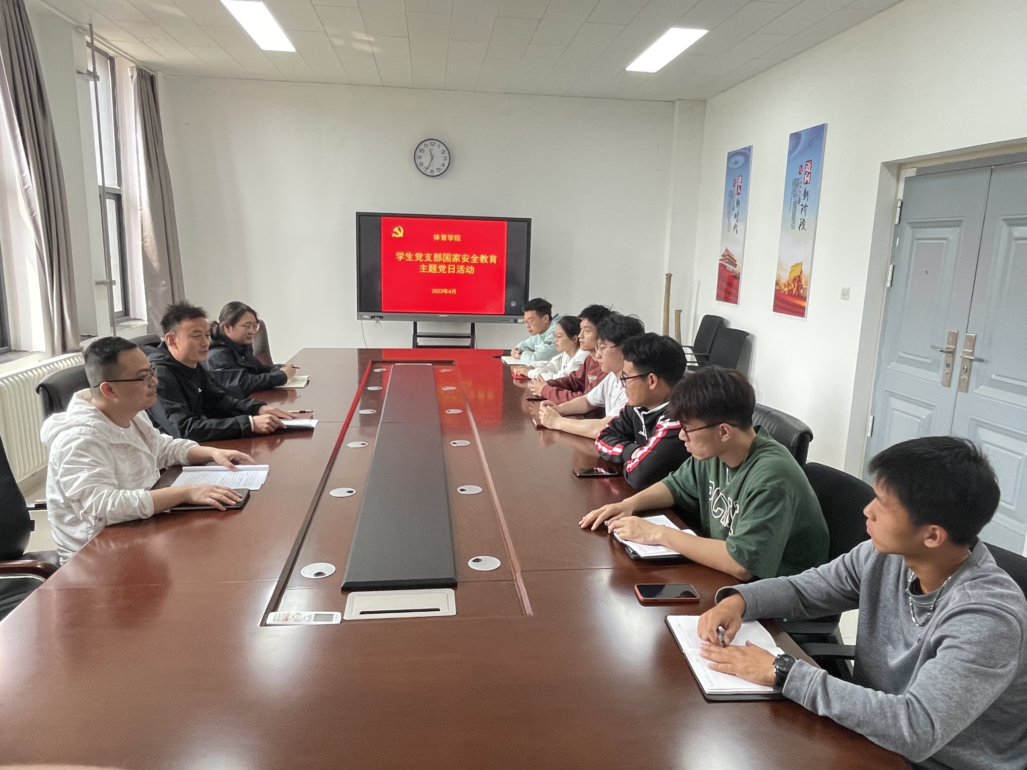为了贯彻总体国家安全观,增强全民国家安全意识和素养,夯实以新安全格局保障新发展格局的社会基础。近日,体育学院各基层党支部在体育馆会议室分别开展“全民国家安全教育日”主题党日活动。
