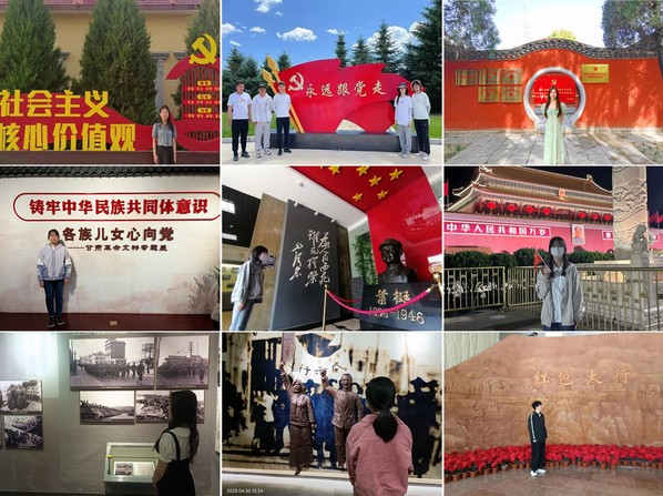 本次实践活动以学生假期返乡出游为契机,组织学生红色打卡,就地参观红色景点,聆听红色故事,实地感悟红色历史,深切领悟红色精神。有的同学来到天安门广场观看升旗仪式,厚植爱国情怀;有的同学来到郑州二七纪念塔,聆听工人运动故事,感受红色精神;有的同学来到红四方面军陕南战役指挥部旧址,重温红军为革命英勇奋斗、浴血奋战的历史,感受中国共产党人顽强的革命精神;有的同学来到甘肃省博物馆,参观“《各族儿女心向党》——甘肃革命文物专题展”,详细了解了近代以来在中国共产党的领导下,陇原各族英雄儿女为民族独立和人民解放事业进行了艰苦卓绝斗争的英雄事迹……同学们纷纷表示,祖国的发展日新月异,作为新时代的新青年,要不忘初心、牢记使命,永远保持艰苦奋斗的精神,在新征程中把课堂学习和社会实践紧密结合起来,实学实干,脚踏实地地向着美好幸福生活不断前进,为全面建设社会主义现代化国家贡献青春力量。