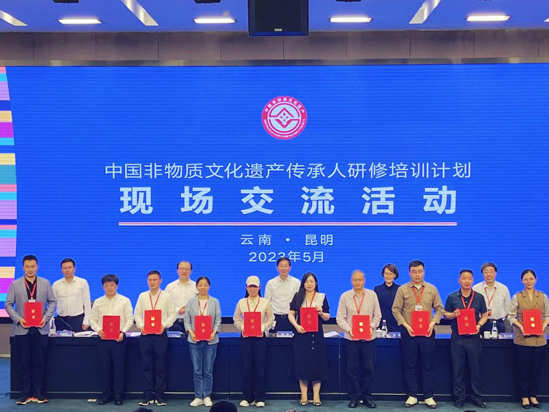 5月9日至11日,中国非遗传承人研修培训计划现场交流活动在云南昆明举办。活动旨在总结工作进展情况,交流优秀教学经验,持续提升非遗系统性保护水平。文化和旅游部党组成员、副部长饶权,非遗司司长王晨阳,云南省委常委、宣传部部长曾艳及教育部高教司、文旅部相关司局、各省文旅厅相关负责人、121所研培院校项目负责人参会,我校受邀参加成果展及现场交流活动,非遗研究中心王潇博士作为代表出席本次活动并做专题汇报。