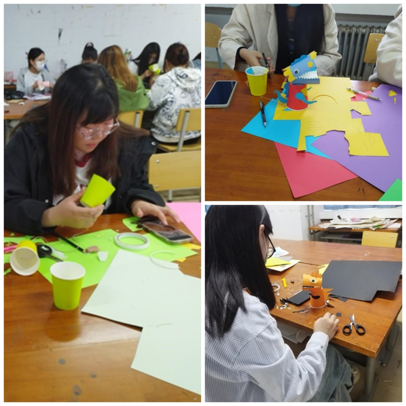 本次活动主要以手工制作纸杯恐龙的形式,来帮助同学们在忙碌的生活中寻找乐趣,体会动手的快乐,通过手工制作、废物利用等艺术媒介来表达同学们的内心,赋予手工作品新的造型和意义。制成可爱的纸杯恐龙后产生的成就感,把烦恼也一并吃掉了。活动开始,在主持人向参与人员展示本次活动的具体流程、活动内容以及活动目的后,让参与人员制作属于自己的纸杯恐龙,做手工不同于机械化的加工,在这一过程中需要付出一定的时间、精力以及感情,可以让同学们放下杂念,全身心地投入,享受这一段制作的时光。