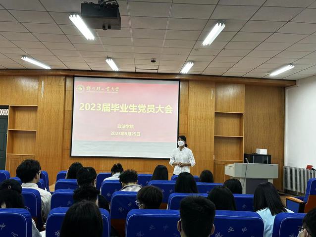 为深入学习党的二十大精神,进一步贯彻落实习近平新时代中国特色社会主义思想,加强毕业生党员的教育管理。525日,政法学院在活动中心113召开2023届毕业生党员大会。学院党委书记宋德涛、副书记刘放美、各学生支部书记和全体毕业生党员参加。