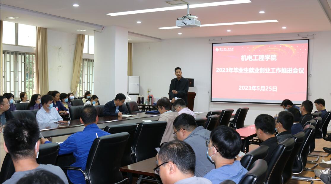 5月25日下午,机电工程学院在东风校区西三楼215会议室召开2023年毕业生就业创业工作推进会。全院教职工参加会议,会议由党委书记刘国豪主持。